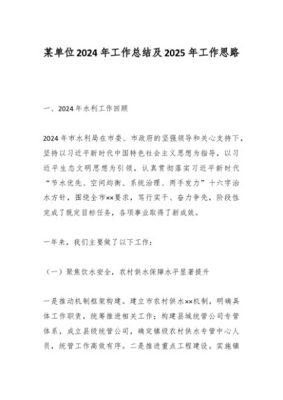 / 某单位2024年工作总结及2025年工作思路