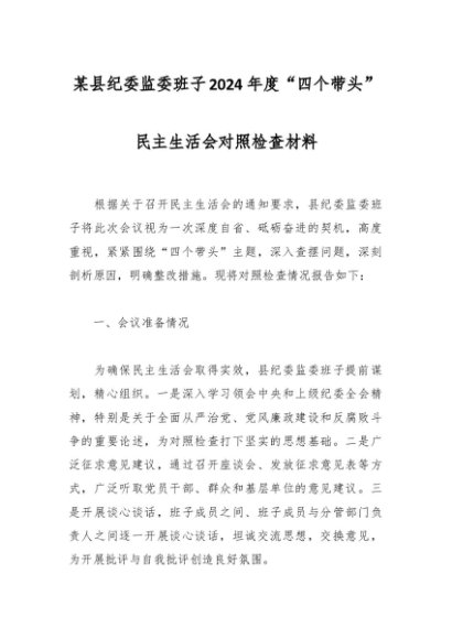 / 某县纪委监委班子2024年度“四个带头”民主生活会对照检查材料