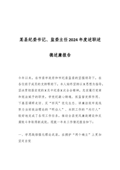 / 某县纪委书记、监委主任2024年度述职述德述廉报告