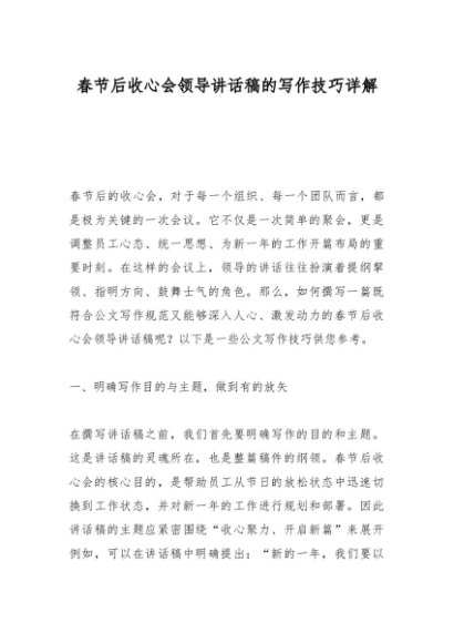 / 春节后收心会领导讲话稿的写作技巧详解