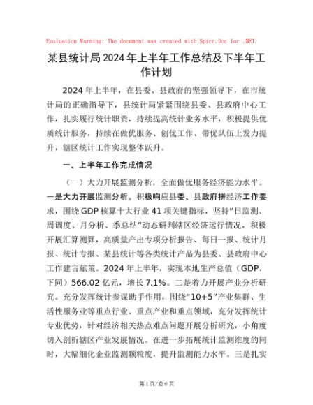 / 某县统计局2024年上半年工作总结及下半年工作计划