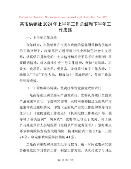 / 某市供销社2024年上半年工作总结和下半年工作思路