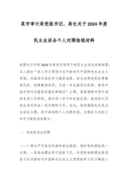 / 某市审计局党组书记、局长关于2024年度民主生活会个人对照检视材料