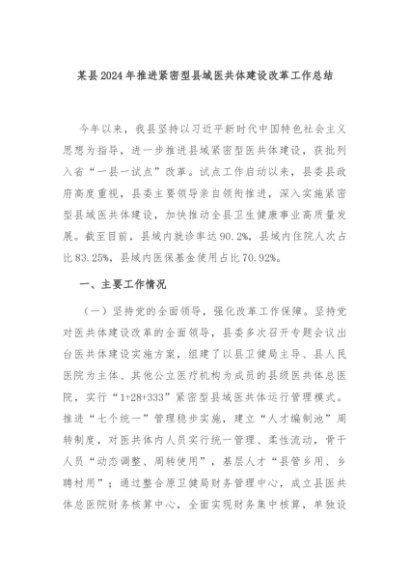 / 某县2024年推进紧密型县域医共体建设改革工作总结