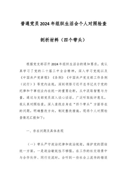 / 普通党员2024年组织生活会个人对照检查剖析材料(四个带头)