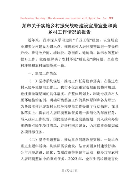/ 某市关于实施乡村振兴战略建设宜居宜业和美乡村工作情况的报告