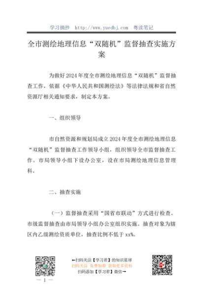 / 方案计划:20241127全市测绘地理信息“双随机”监督抽查实施方案
