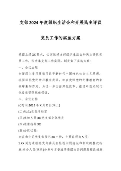 / 支部2024年度组织生活会和开展民主评议党员工作的实施方案