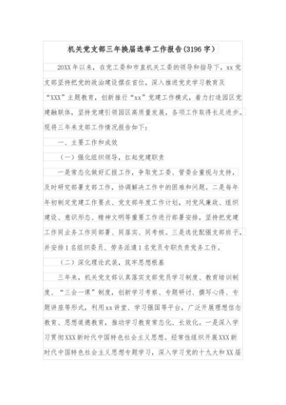 / 机关党支部三年换届选举工作报告(3196字)