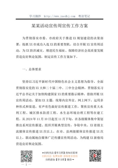/ 方案计划:20241127某某活动宣传周宣传工作方案