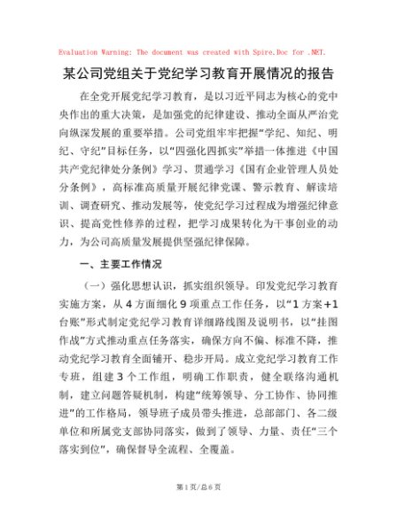 / 某公司党组关于党纪学习教育开展情况的报告