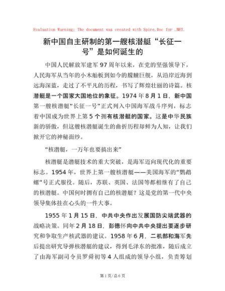 / 新中国自主研制的第一艘核潜艇“长征一号”是如何诞生的