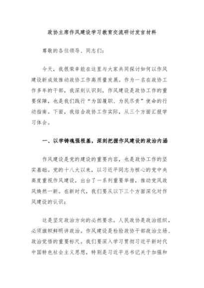 / 政协主席作风建设学习教育交流研讨发言材料