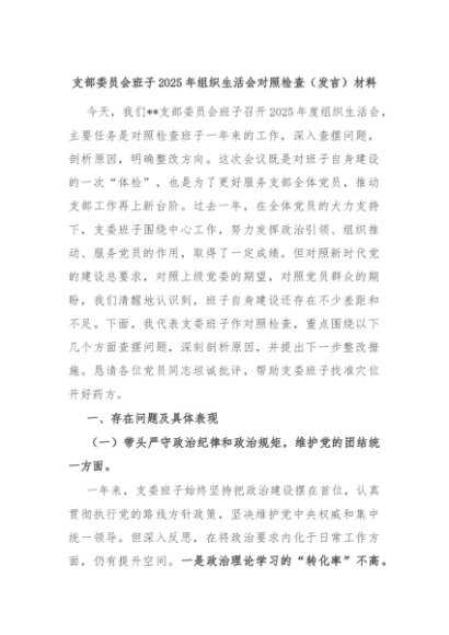 / 支部委员会班子2025年组织生活会对照检查(发言)材料
