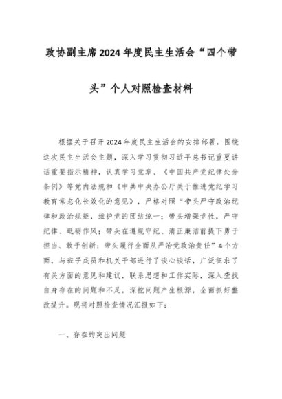 / 政协副主席2024年度民主生活会“四个带头”个人对照检查材料