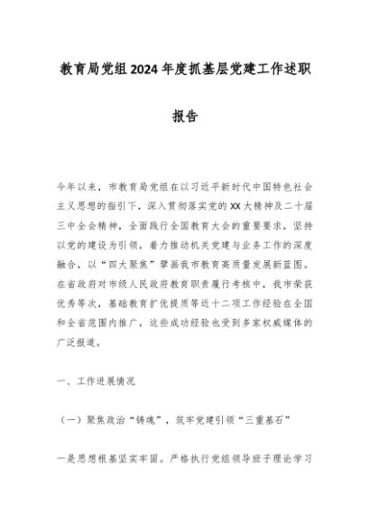 / 教育局党组2024年度抓基层党建工作述职报告