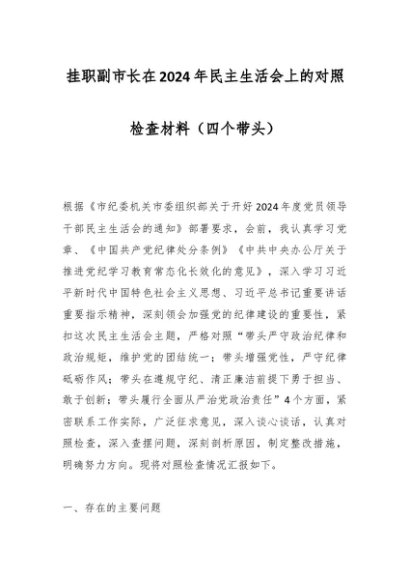 / 挂职副市长在2024年民主生活会上的对照检查材料(四个带头)