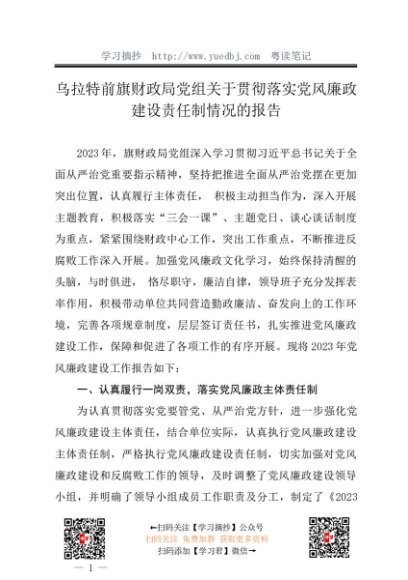 / 年度专项工作总结∣党风廉政:20240125关于贯彻落实党风廉政建设责任制情况的报告(财政局党组)