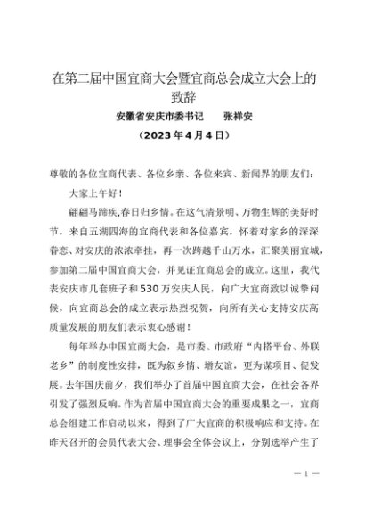 / 张祥安:在第二届中国宜商大会暨宜商总会成立大会上的致辞