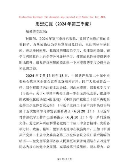 / 思想汇报(2024年第三季度)