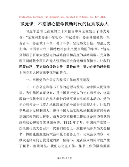 微党课:不忘初心使命 做新时代的优秀政办人