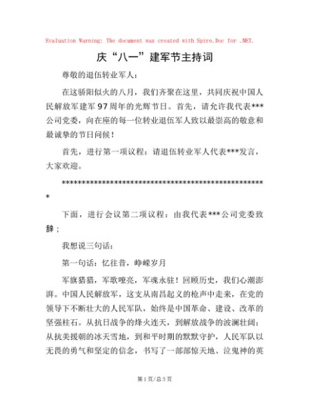 / 庆“八一”建军节主持词