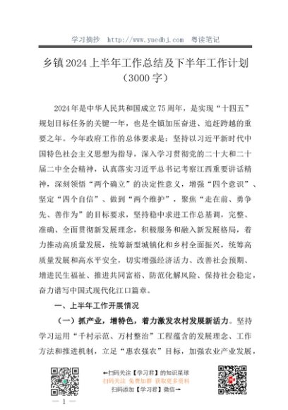 / 年度专项工作总结∣半年总结:乡镇2024上半年工作总结及下半年工作计划(3000字)