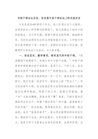 / 年轻干部在比业务、话发展中层干部论坛上的交流发言