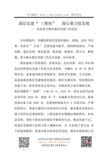 / 年度专项工作总结∣基层党建:20240627基层党建三聚焦 凝心聚力促发展——范县着力推动基层党建工作综述