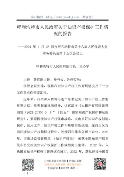 / 年度专项工作总结∣知识产权:20240428呼和浩特市人民政府关于知识产权保护工作情况的报告