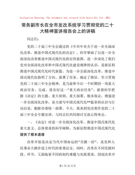 / 常务副市长在全市发改系统学习贯彻党的二十大精神宣讲报告会上的讲稿
