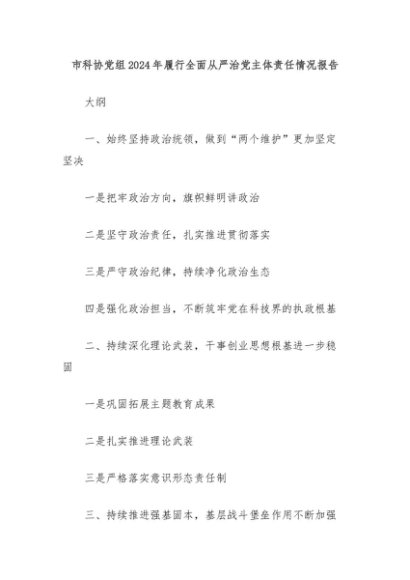 / 市科协党组2024年履行全面从严治党主体责任情况报告
