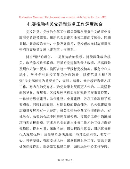 扎实推动机关党建和业务工作深度融合