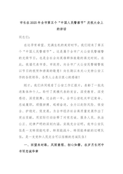 / 市长在2025年全市第五个“中国人民警察节”庆祝大会上的讲话