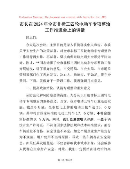 / 市长在2024年全市非标三四轮电动车专项整治工作推进会上的讲话
