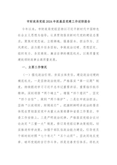 / 市财政局党组2024年抓基层党建工作述职报告