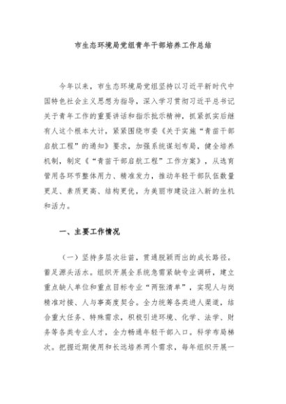 / 市生态环境局党组青年干部培养工作总结