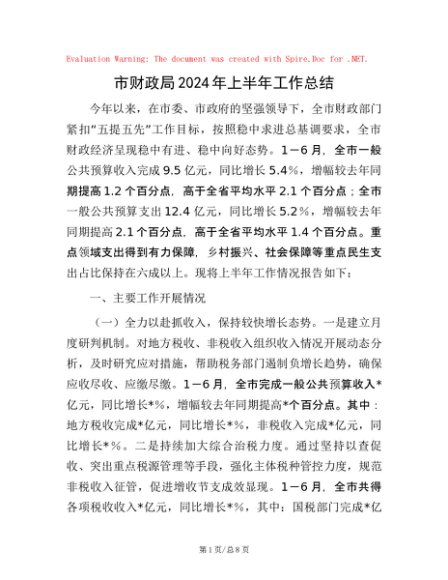 / 市财政局2024年上半年工作总结