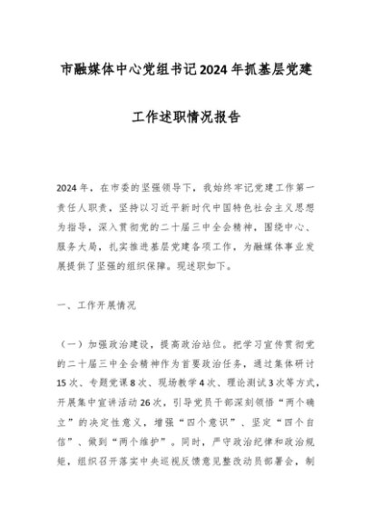 / 市融媒体中心党组书记2024年抓基层党建工作述职情况报告