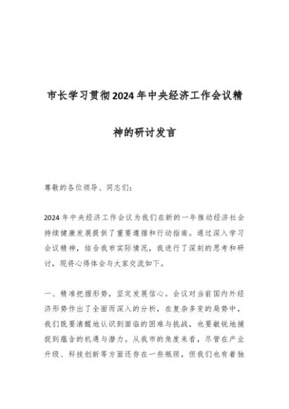 / 市长学习贯彻2024年中央经济工作会议精神的研讨发言