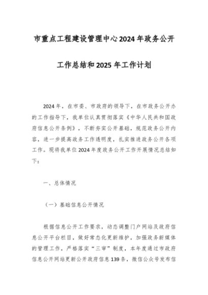 / 市重点工程建设管理中心2024年政务公开工作总结和2025年工作计划