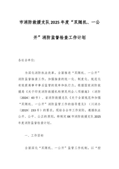 / 市消防救援支队2025年度“双随机、一公开”消防监督检查工作计划