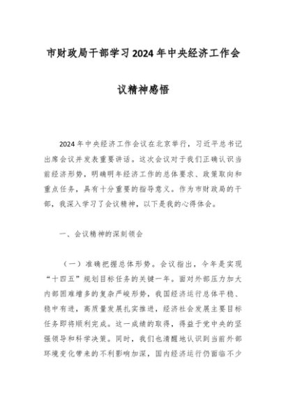 市财政局干部学习2024年中央经济工作会议精神感悟