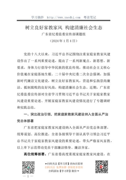 / 年度专项工作总结∣家教家风:20240104树立良好家教家风,构建清廉社会生态——广东省纪委监委宣传部课题组