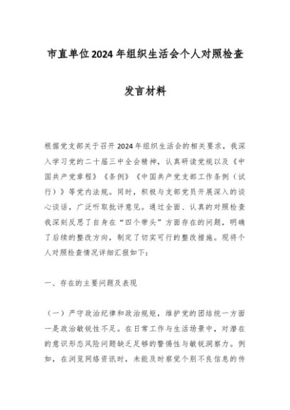 / 市直单位2024年组织生活会个人对照检查发言材料