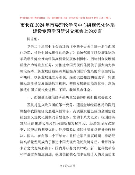 / 市长在2024年市委理论学习中心组现代化体系建设专题学习研讨交流会上的发言