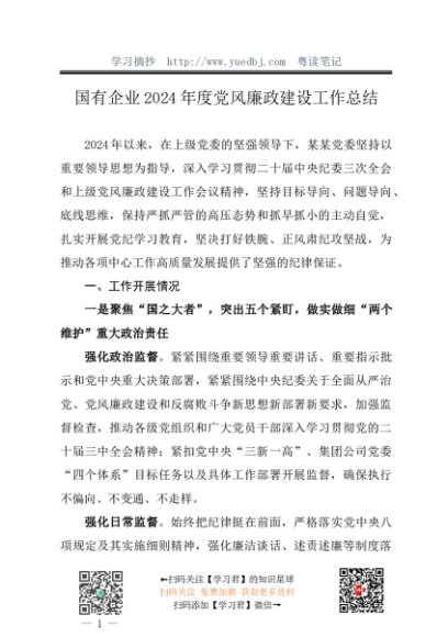 / 年度专项工作总结∣党风廉政建设:20241106国有企业2024年度党风廉政建设工作总结