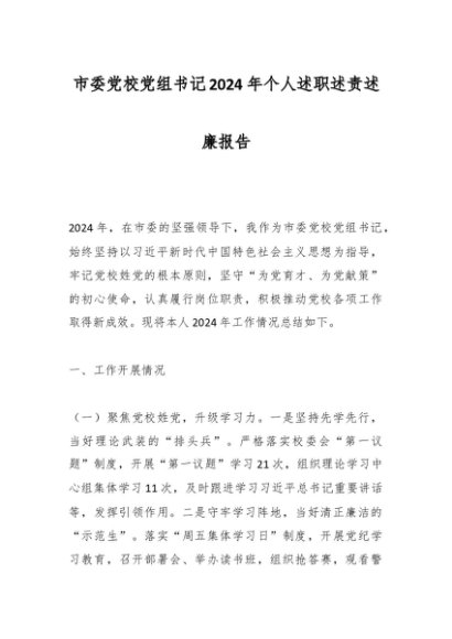 / 市委党校党组书记2024年个人述职述责述廉报告
