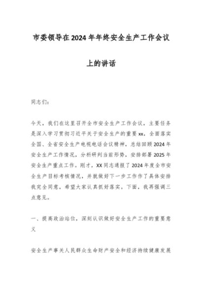 / 市委领导在2024年年终安全生产工作会议上的讲话