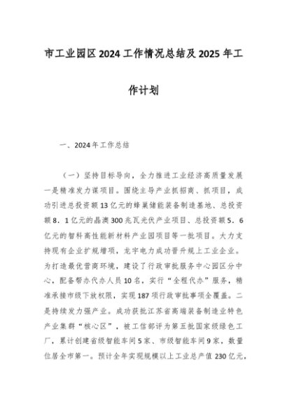 / 市工业园区2024工作情况总结及2025年工作计划